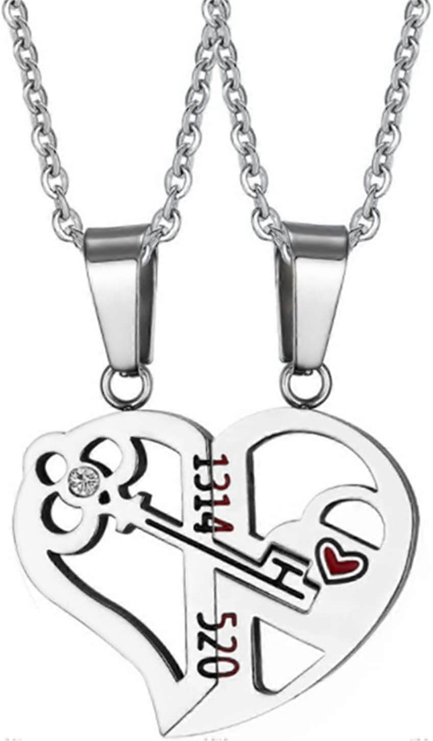 3pcs Couples Necklaces Set Personalized Love Heart Key Pendant Necklace Couples (D-8D)