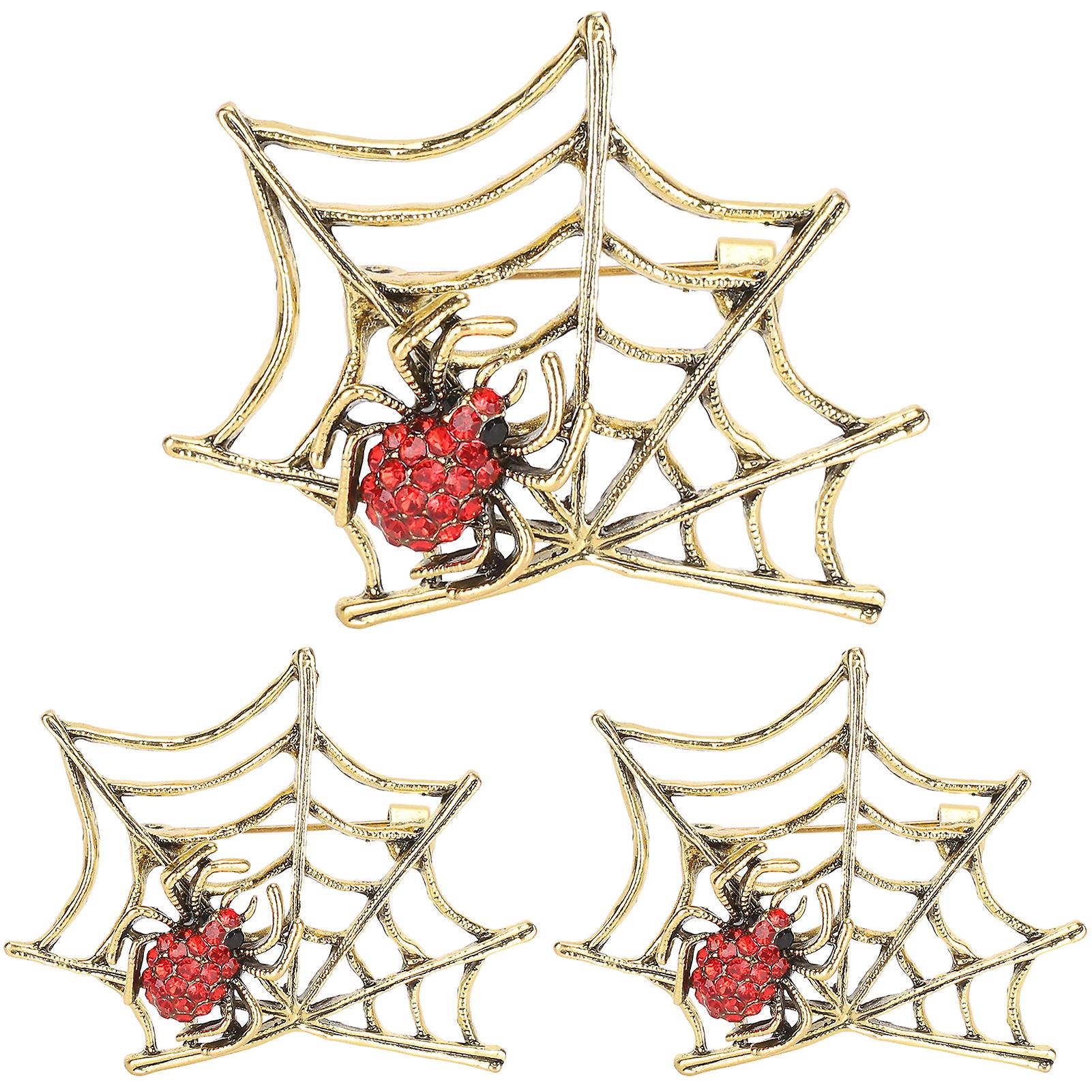 3Pcs Brooch Pins Hand‑Made Retro Fashion Alloy Diamond Spider Shaped DIY Wedding Bouquets Kit