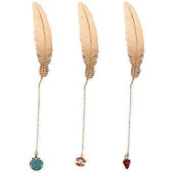 3pcs Classic Bookmarks Chinese Style Feather Modeling Bookmarks (Assorted Color)