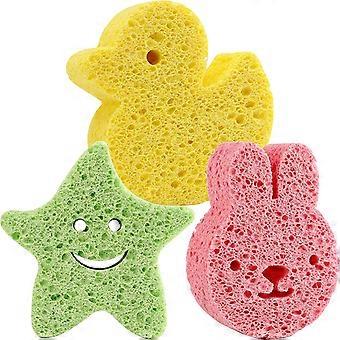 3pcs Wood Pulp Baby Shower Sponges Cartoon Kids Bath Sponges Small Toddler Shower Toys