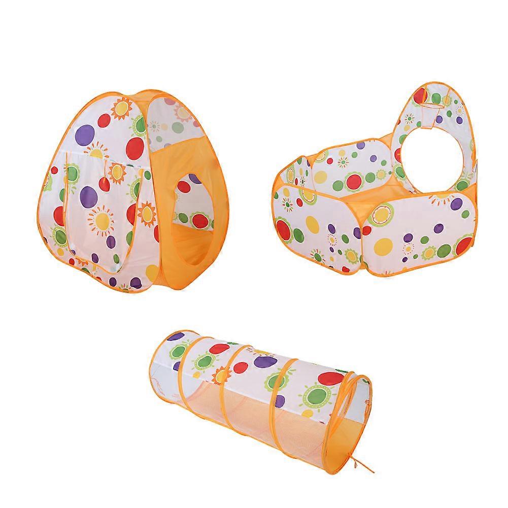 3PCS Children's Tent Indoor Playhouse Folding Portable Ocean Ball Set (Orange sun flower)