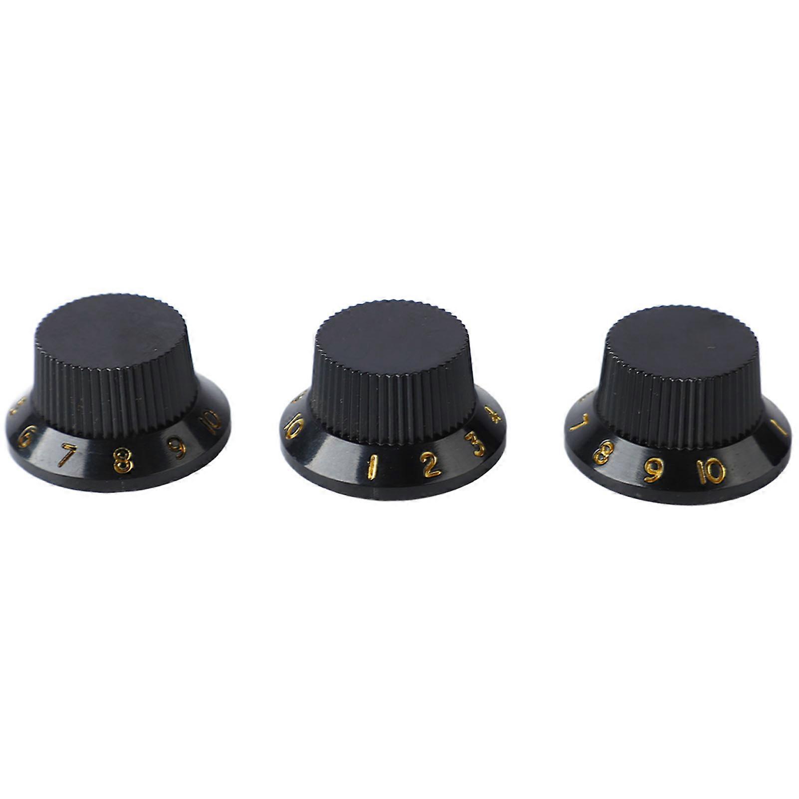 3PCS Potentiometer Rotary Knobs Tone Volume Control Knob Replacement for Electric Guitar Bass Black Knob Gold Lettering