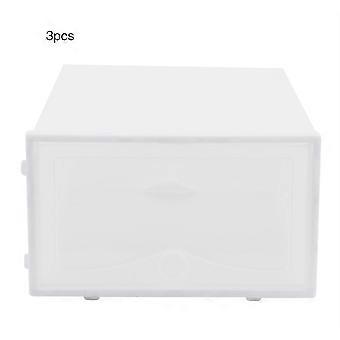 3Pcs Thickened Transparent Lid Shoes Box Home Stackable Shoe Storage Organizer (White)