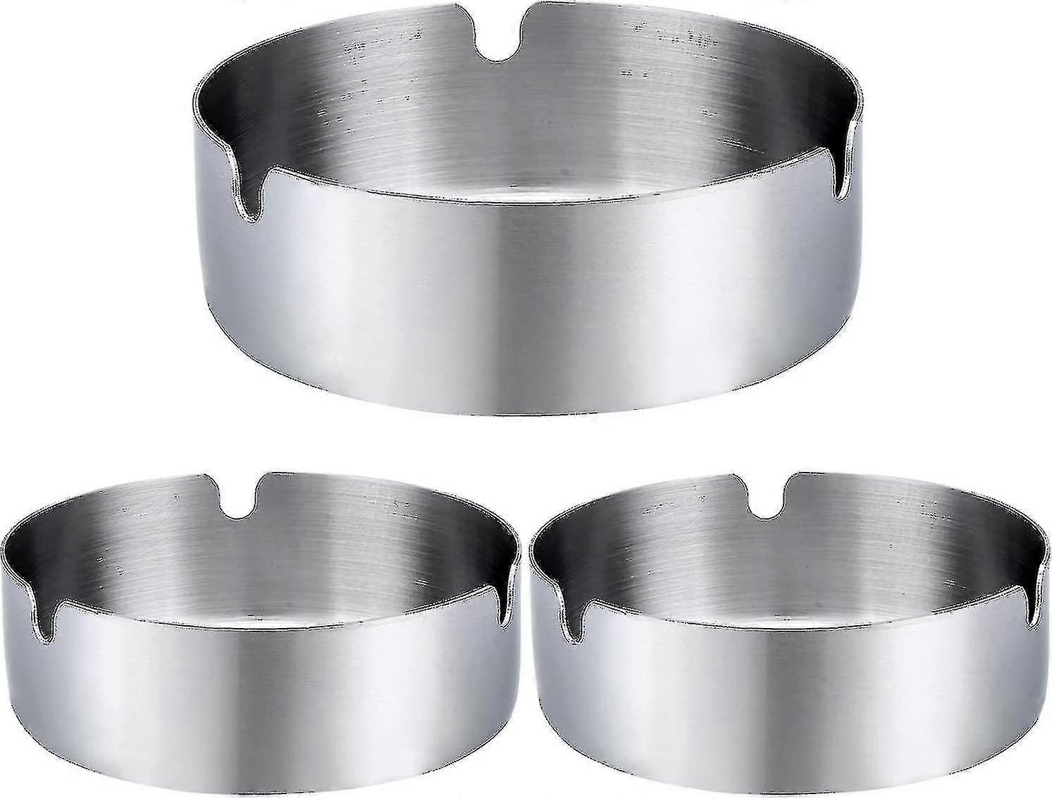3pcs Ashtray Tabletop Round Stainless Steel Ash Tray
