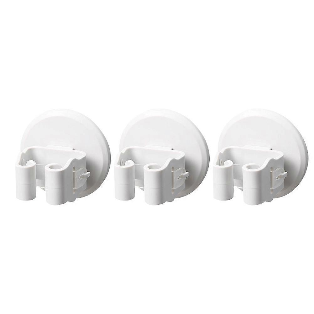 3pcs Mop and Broom Holder Wall-mounted Anti-Slip Clips Cleaning Tool Gripper (White)