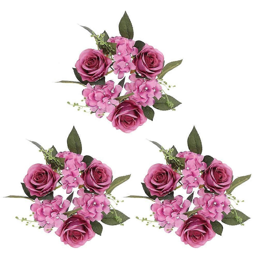 3Pcs Artificial Flower Candle Ring Rose Wreath Tea Light Candle Ring Wedding Table Centerpiece