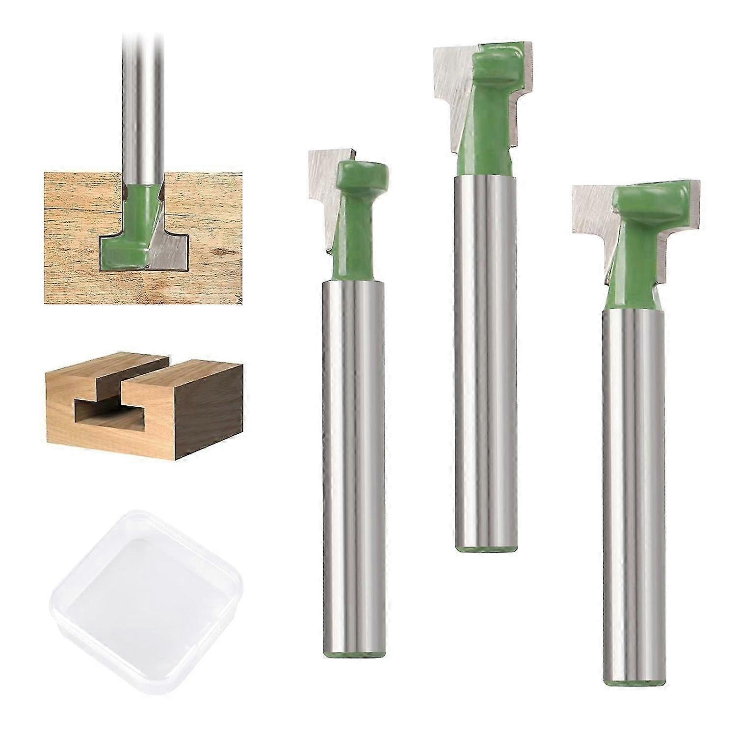 3PCS 6.35mm Router Bits Set - Wood Milling Cutter with 7.96mm/9.52mm/12.7mm Shank for Flush & T-Slot Routing