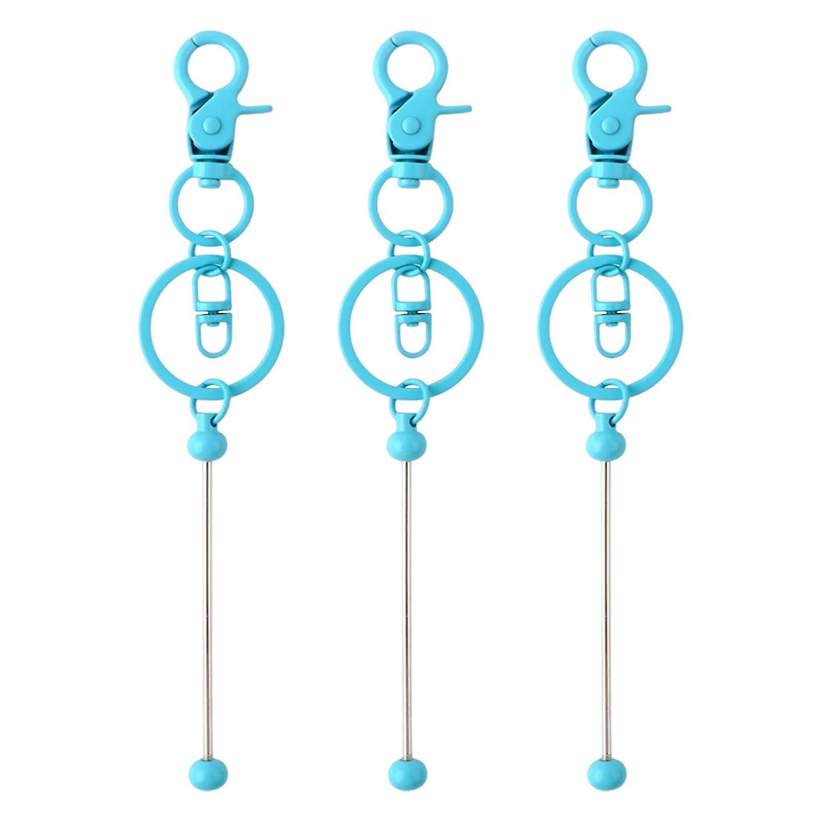3Pcs Beaded Keyring Bars Crafting DIY Keychain Making for Family Kids Friend pink