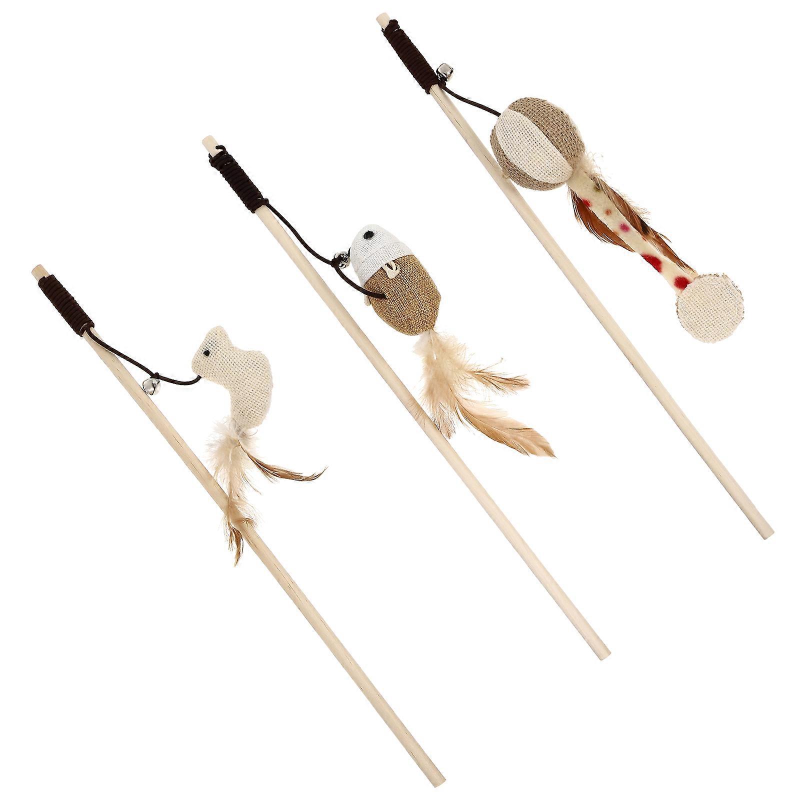 3Pcs Cat Flirting Stick with Bell Interactive Pet Toys Teaser Toys for Cats
