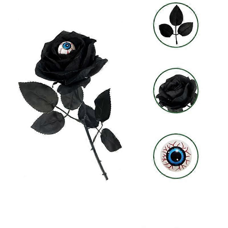 3PCS Halloween Artificial Roses with Eyes - Black
