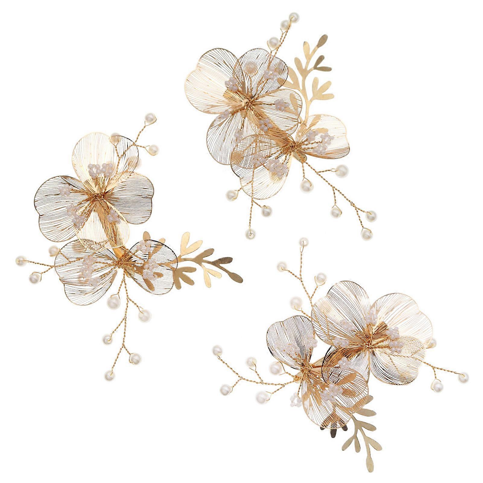 3PCS Sweet Style Hair Clips with Flower Decor Hollow Design Alloy Forehead