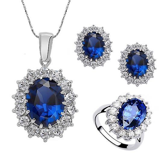 3Pcs/Set Oval Faux Gem Full Rhinestone Charm Earrings Necklace Ring Lady Jewelry