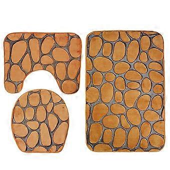 3pcs/set 3D Cobblestone Printing Dustproof Water Absorbent Bathroom Mat Set (Beige)