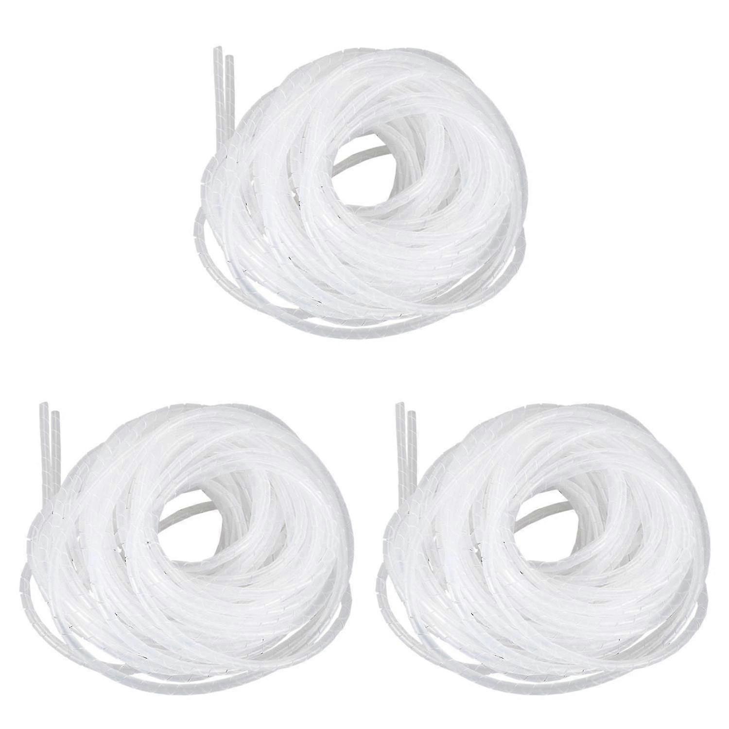 3x Cable Wire Organizer Manager Spiral Wrap Band 6mm Dia 15m Length White