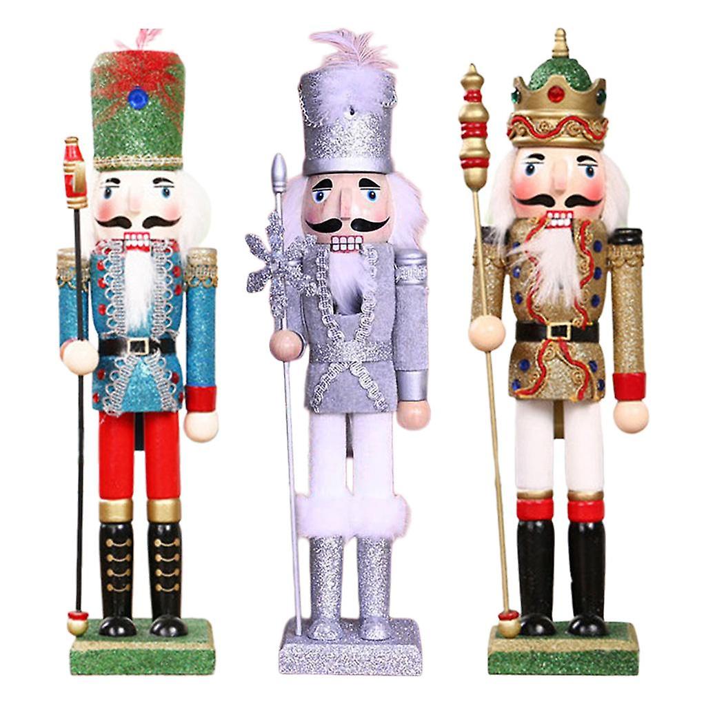 3x Wooden Nutcracker Christmas Decor King Nutcracker Home Ornaments