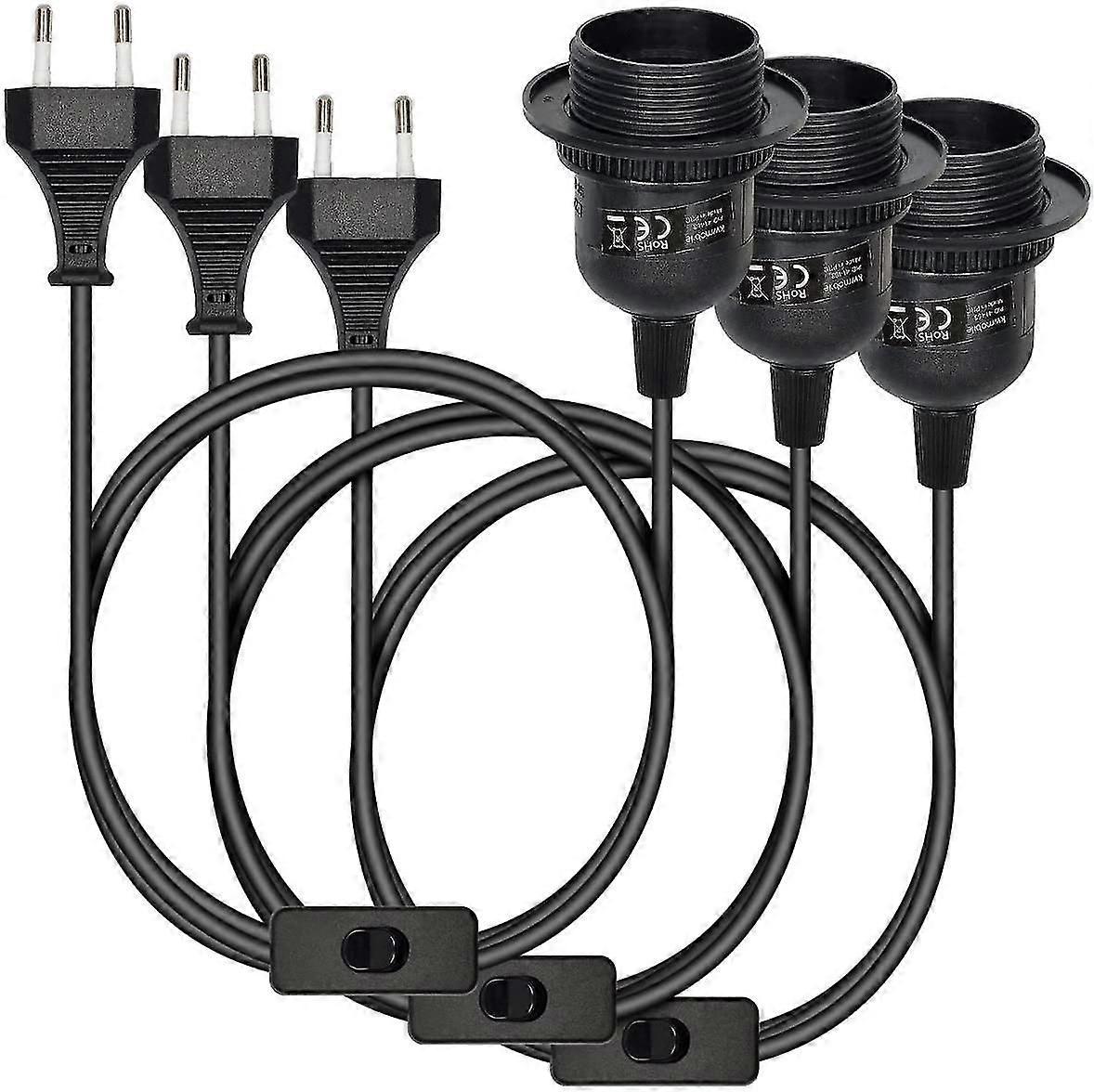 3x Pendant Luminaire - Socket With Circuit Black Housing With 3.5m Cable Screw Threaded Ring - Pendant Lamp E27