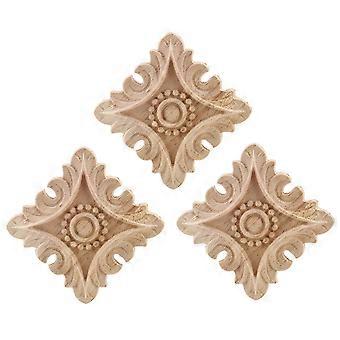 3X Vintage Unpainted Wood Carved Corner Onlay Applique Frame Background Home Furniture Wall Cabinet