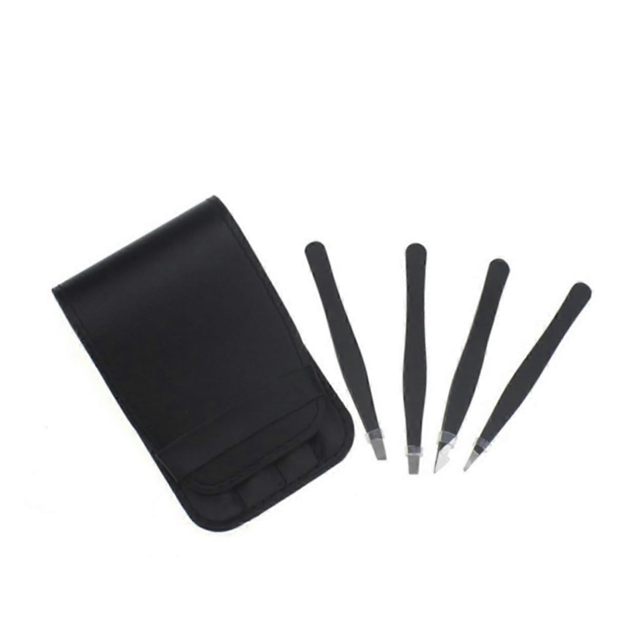 4piece Eyebrow and Ingrown Hair Precision Tweezers Set with Flat Slant Tips and Storage Pouch, Black