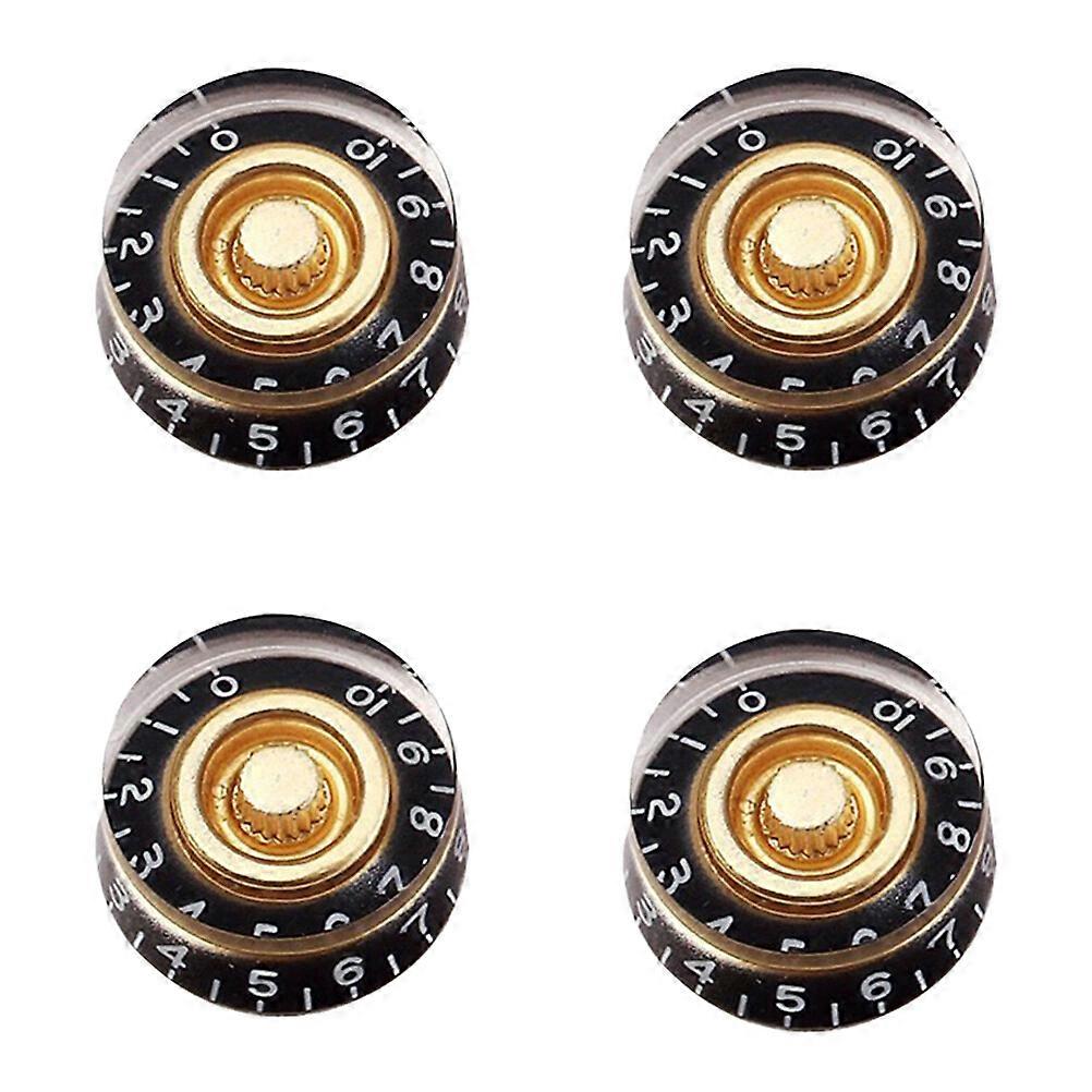4pcs Black Gold Control Knob Acrylic Knob with White Word for Electric Guitar