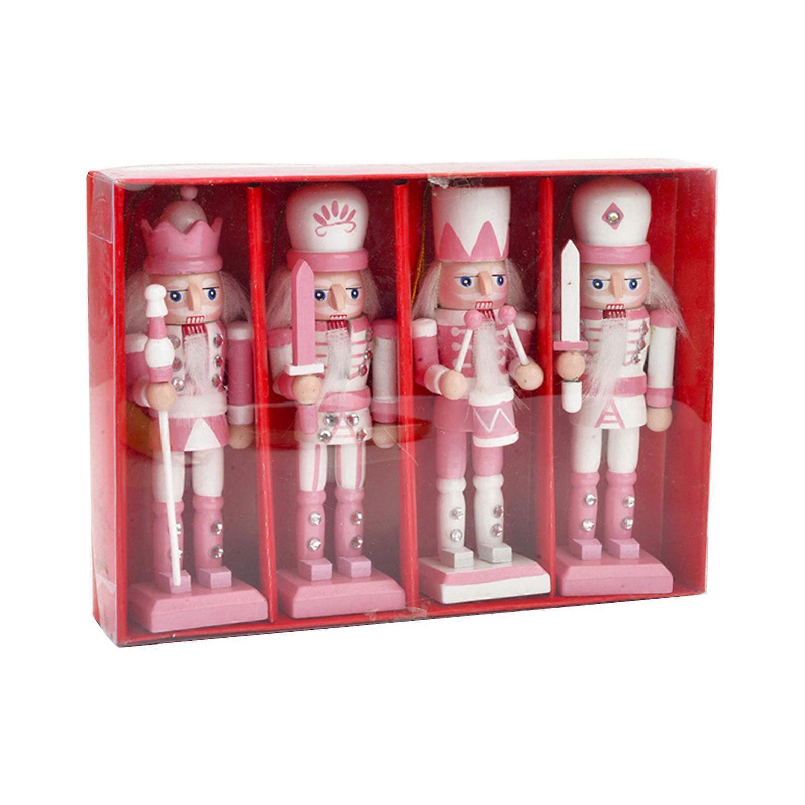 4pcs Christmas Decoration Pink Wood Nutcrackers Soldier Figurine Puppet Doll Ornament Indoor Winter Table Centerpieces