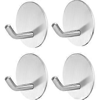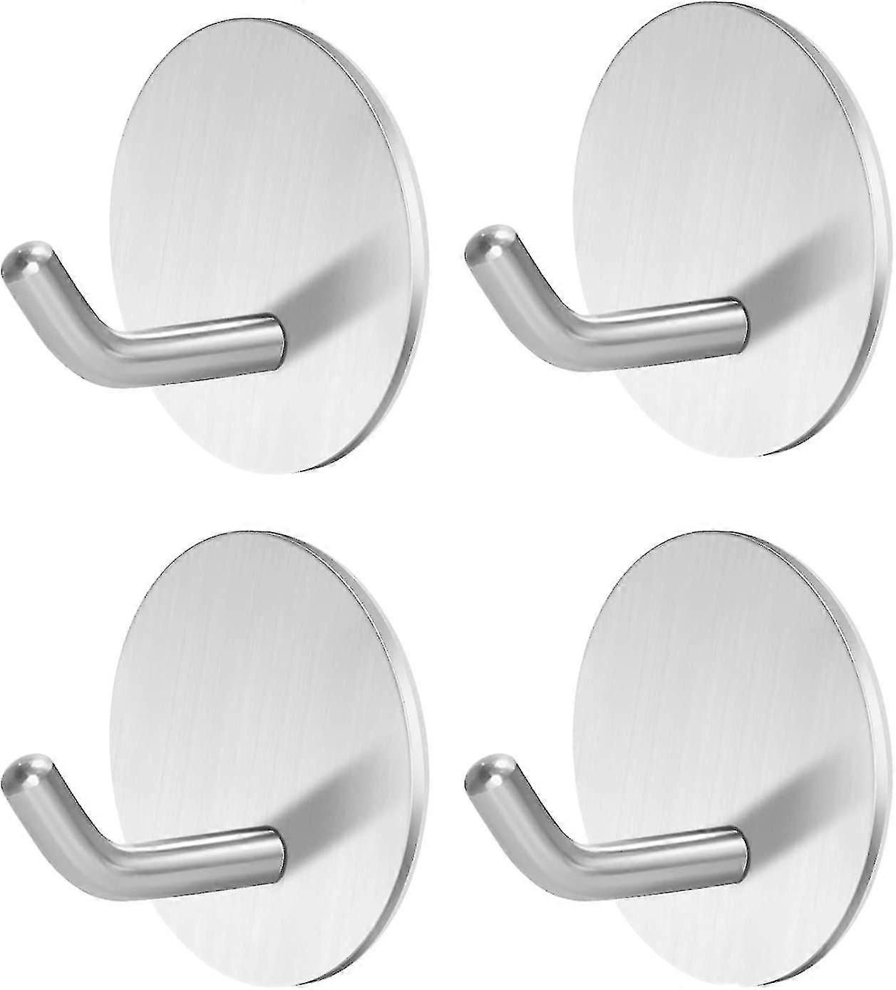 4 Pieces Hooks Self-adhesive Silver Towel Hooks Stainless Steel Wall Hooks