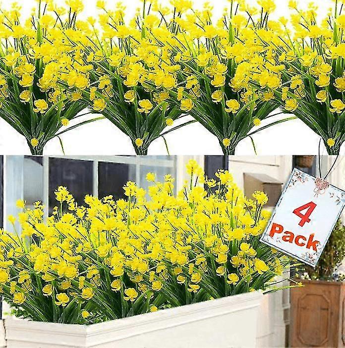 4 Bundles Outdoor Artificial Fake Flowers Shrubs Uv Resistant Plants, Faux Plastic Greenery
