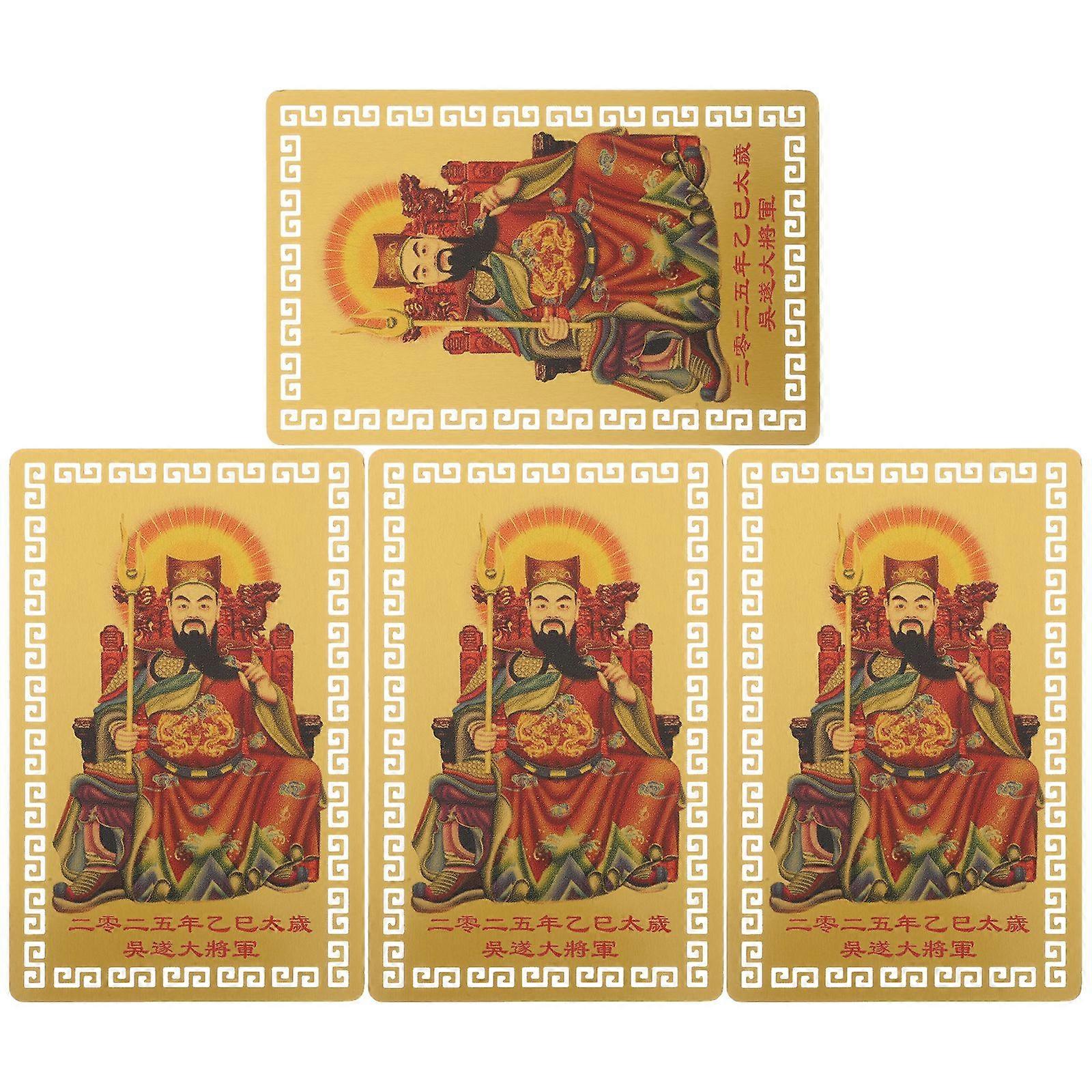 4 Sheets Chinese Style Amulet Cards For Protection And Good Luck Traditional Amulet Card Protection Chinese General Auspicious Card Amulet Card
