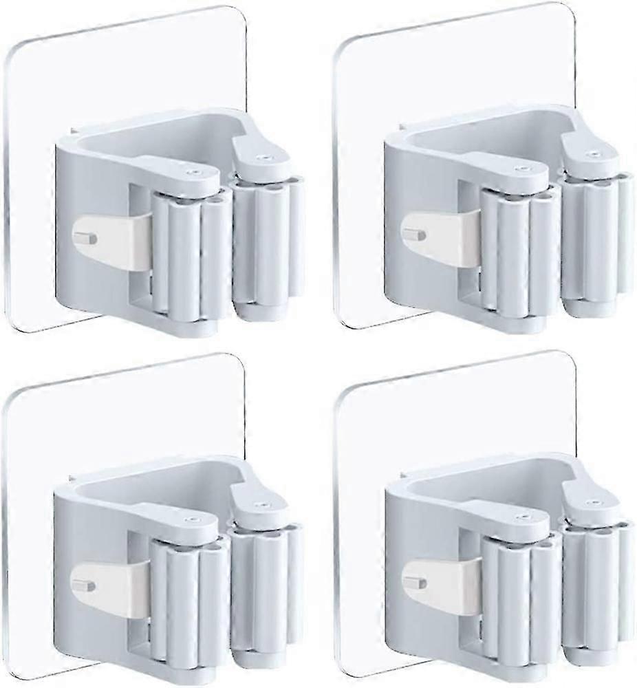 4 Pieces Broom Holder, Self Adhesive Rack Mop Holder, No Drilling, Wall Mounted Holder For Kitchen, Bathroom, Garage, Garden Storage Rack Organization