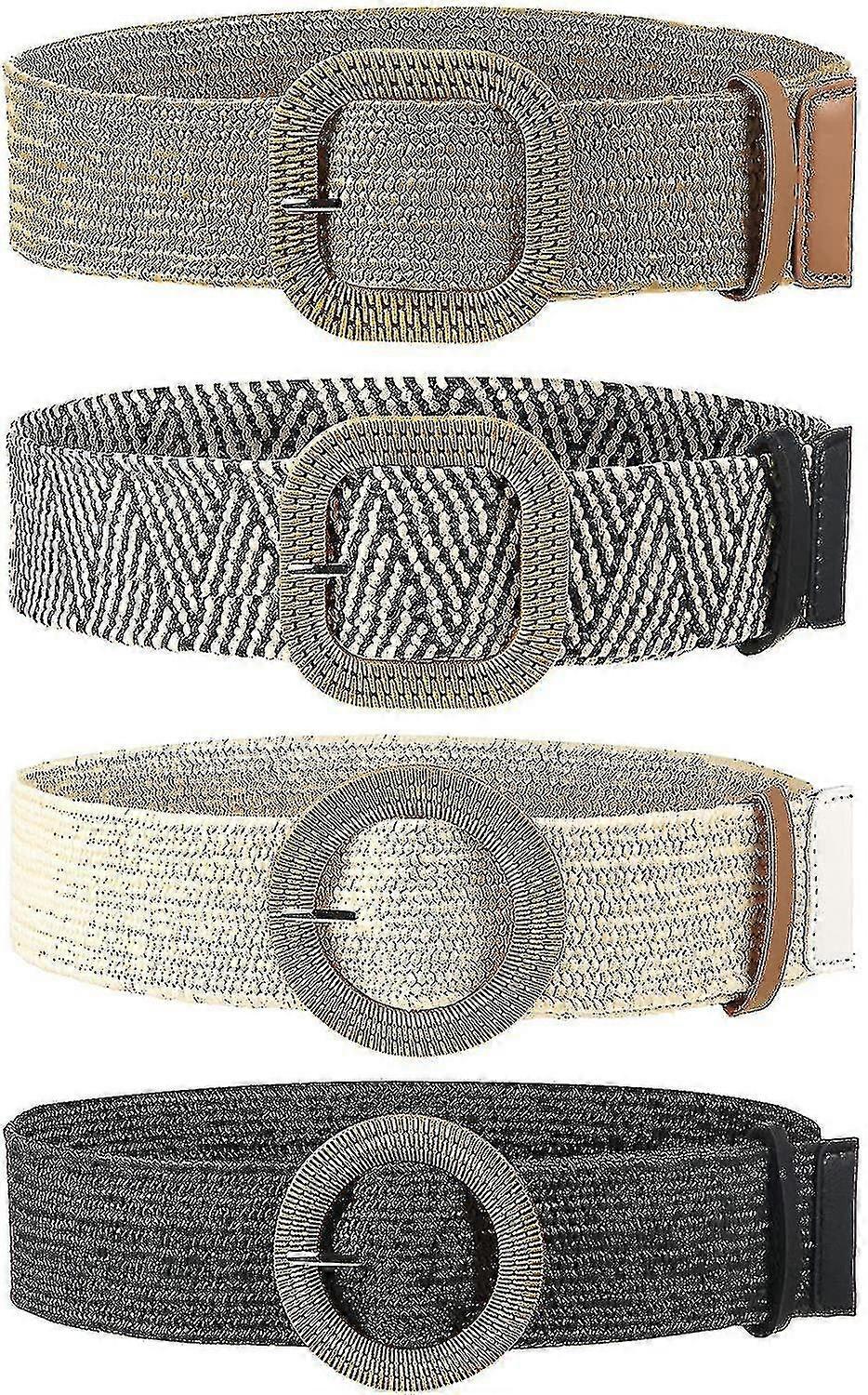 4 Pieces Straw Woven Stretch Waist Belt Women Skinny Belt Sty Waist