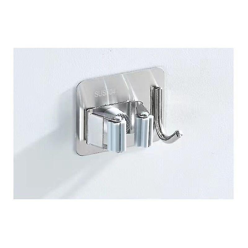 4 Pieces Gray Wall Mounted Broom Holder, Self-adhesive Stainless Steel Mop Holder