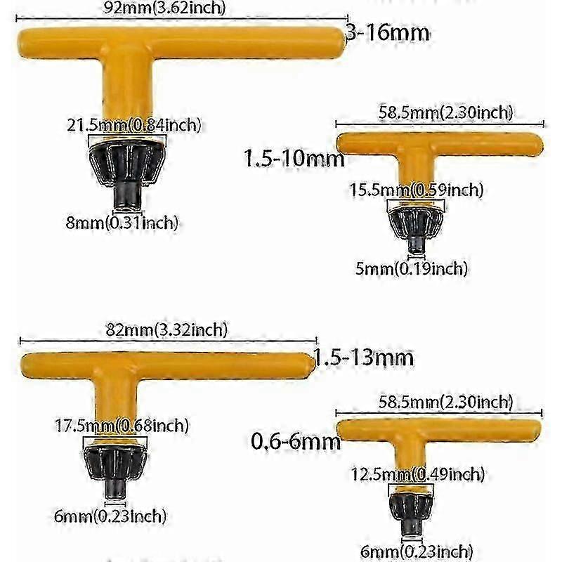 4 Pieces Yellow Steel Electric Drill Chuck Keys 6mm 10mm 13mm 16mm Universal Chuck Key Universal T-shaped Drill Key for Drill Tightening