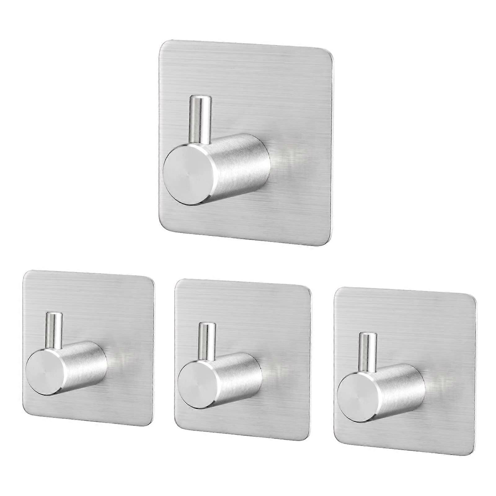 4 Pieces Adhesive Stainless Steel Wall Hook, Adhesive Wall Hooks Bathroom Kitchen, Stainless Steel Adhesive Wall Hook Self-adhesive Without Drilling