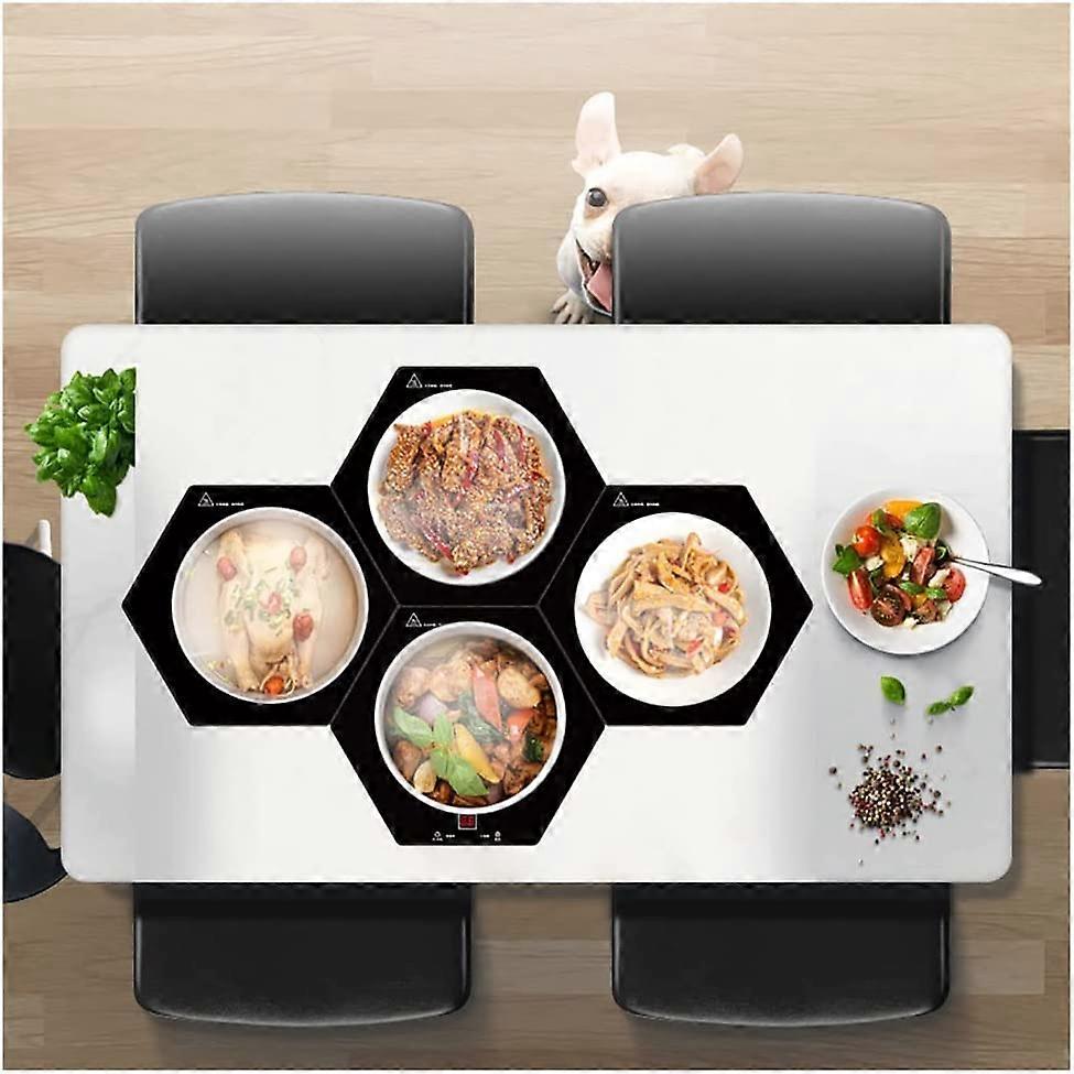 4 Pieces Splicable Food Hot Plate, Tempered Glass Tray for Food with Adjustable Temperature Control