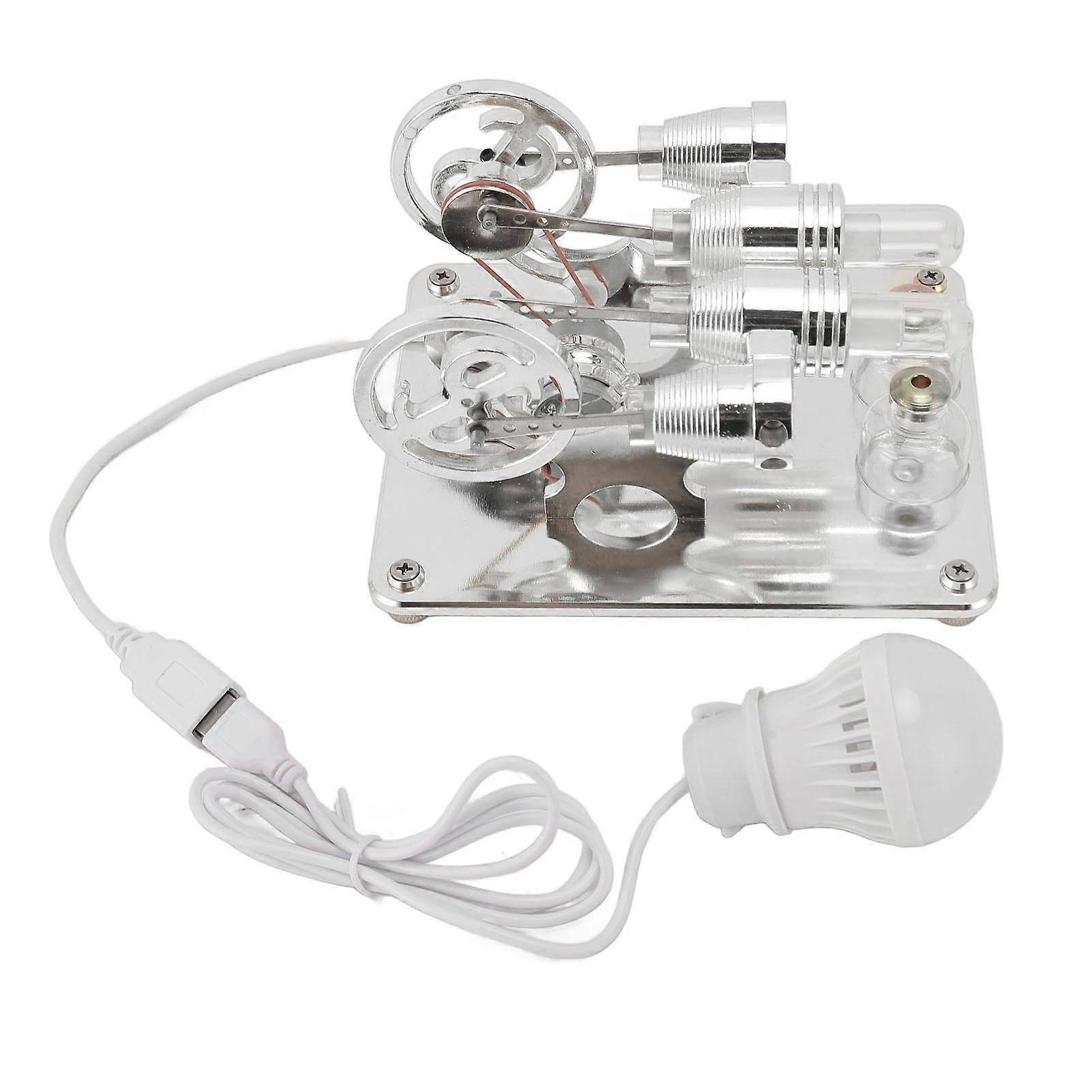 4 Cylinder Hot Air Stirling Engine DIY High Hardness LED Light Stirling Engine for Kids Students Science Project Classroom Silver