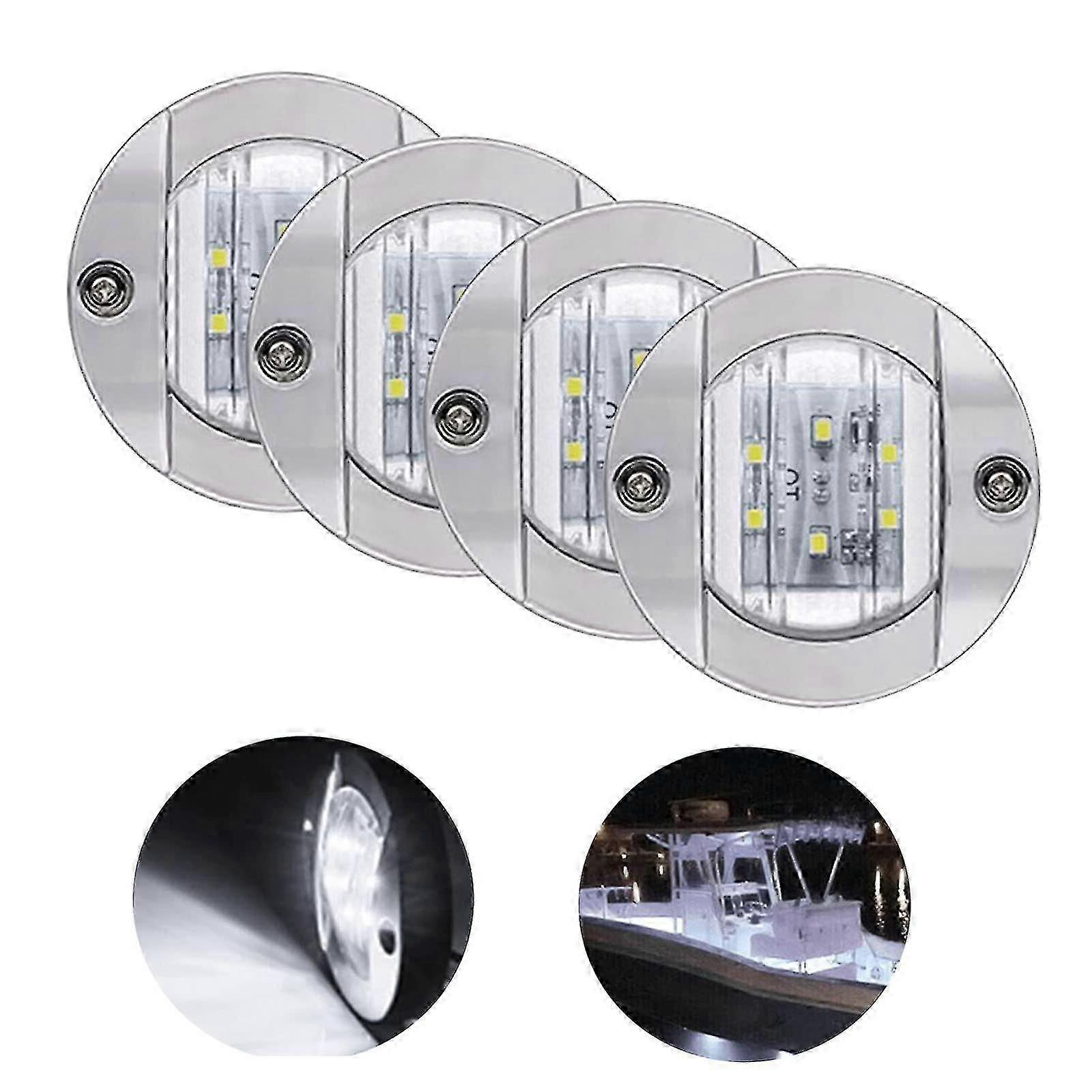 4 Pack Led Boat Light 12v Round Marine Lamp Led Transom Mount Light For Boat Deck (white)