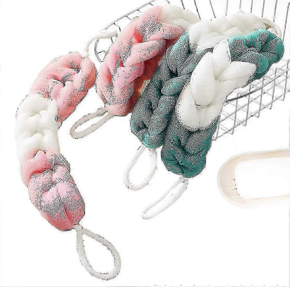 4 Packs Long Stretch Back Sponge With Rope Back Scrubber Bath Shower Mesh Sponge Exfoliating Body Scrub Stretch Braided Loofah