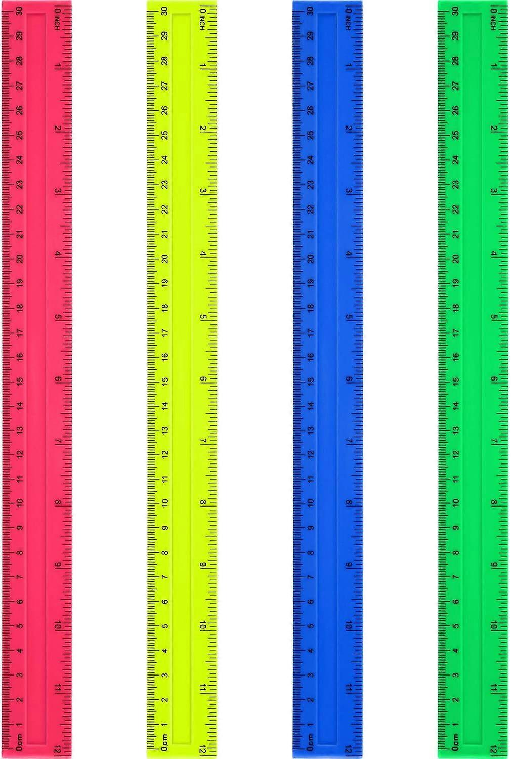 4 Packs Plastic Straight Rulers Plastic Rule Measuring Tool for Student School Office (12 Inch, Colorful)