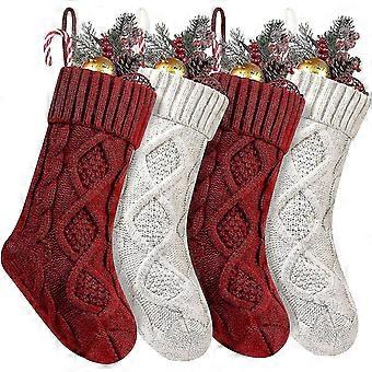 4 πακέτα χριστουγεννιάτικες κάλτσες, 14 ίντσες καλώδιο πλεκτές κάλτσες δώρα διακόσμηση για οικογενειακές διακοπές Χριστούγεννα κόμμα διακόσμηση, ελεφαντόδοντο λευκό και Βουργουνδία