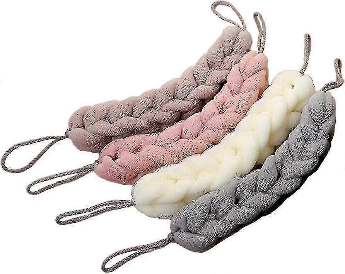 4 Packs Long Stretch Back Sponge with Rope Handles Back Scrubber Bath Shower Mesh Sponge Exfoliating Body Scrub Stretch Braided Loofah compatible with