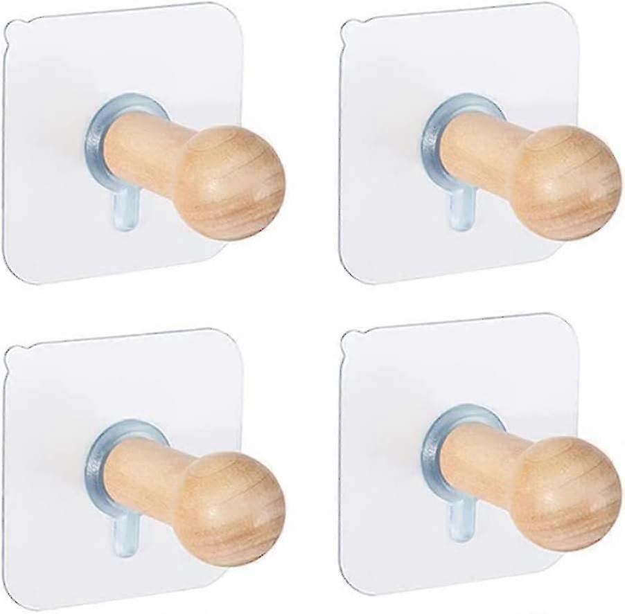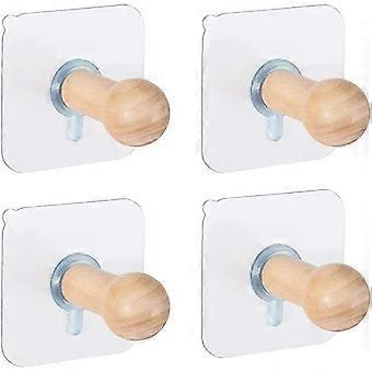 4 pack Wooden Self Adhesive Wall Hooks Natural Wood Decorative Coat Peg Hooks, Storage Hanger Wall Mounted Coat Hanging Hook