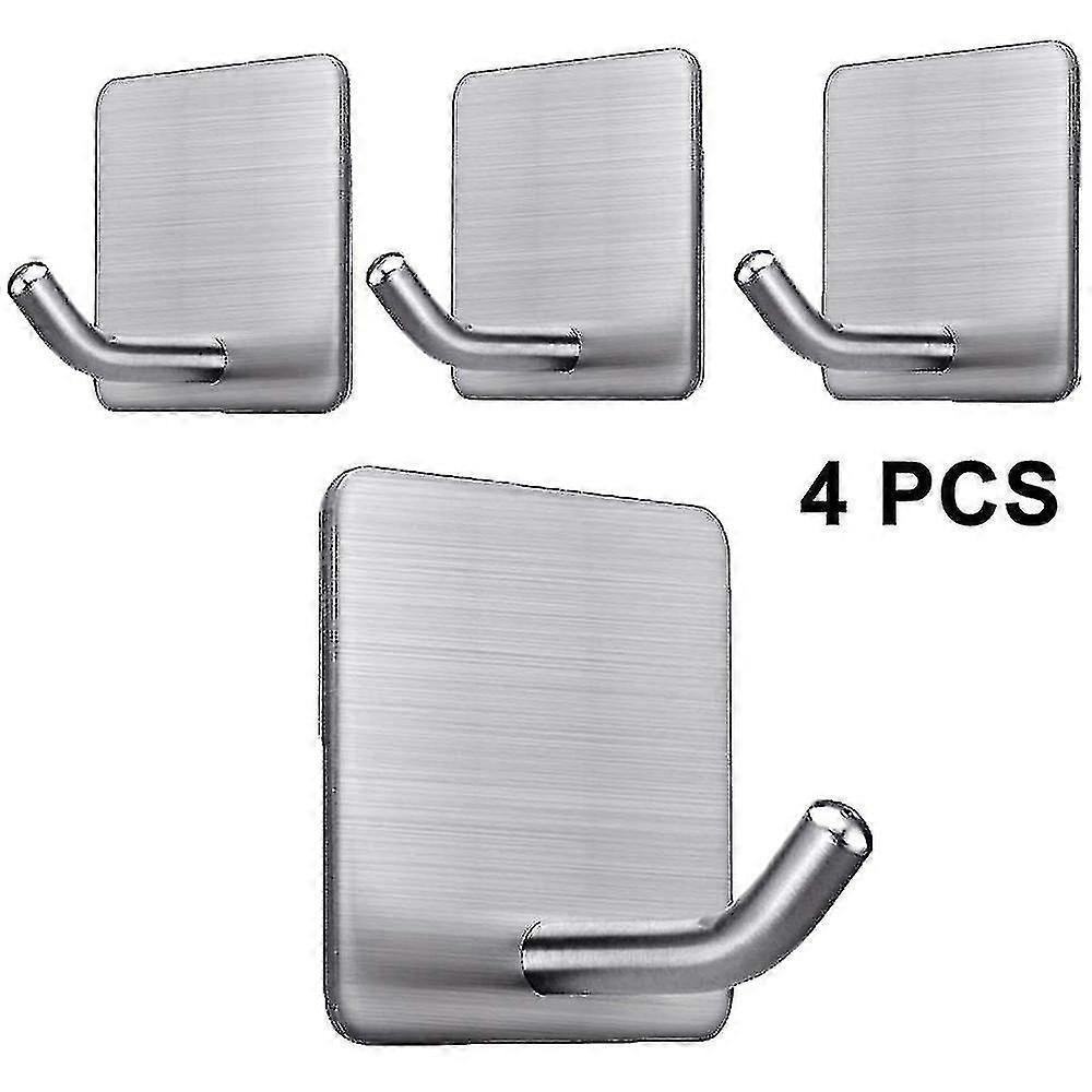 4 Pack Adhesive Hooks Heavy Duty Stick On Door Cabinet Stainless Steel Silver