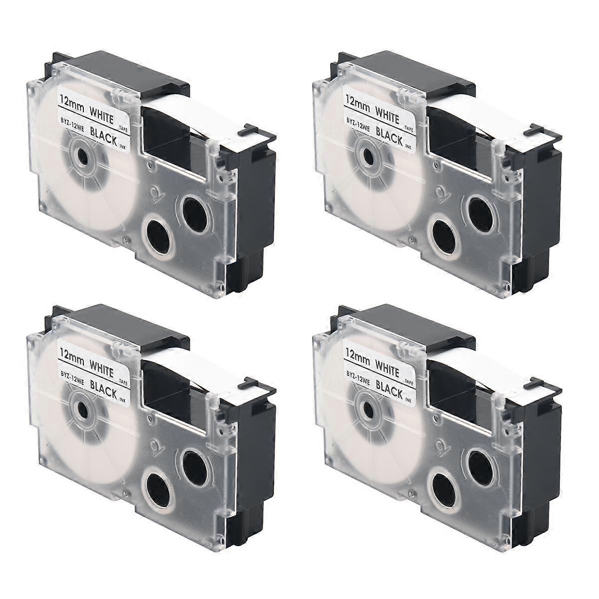 4 Pack 12mm Black on White Label Tape Label Maker Compatible with KL1500 KL2000 KL7000 KL7200 -100 KL120 KL60 -750B Label Makers