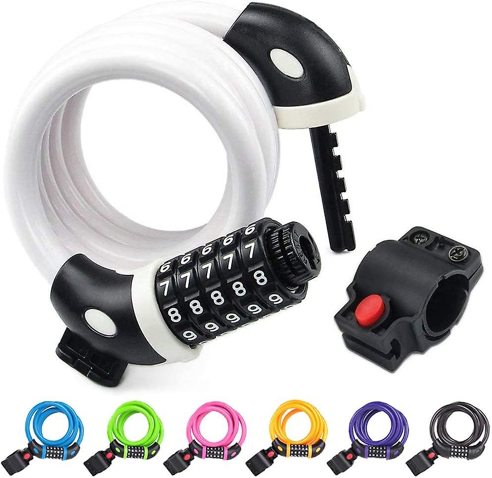 Safe and Resettable: 5-digit smart combination lock, much safer than other 4-digit locks. Simply define your personal number combination. Braided steel and PVC coating: The bicycle cable is made of high strength braided steel wire, which can withstand 2.4kN tension and 7kN shear force, more strength and flexibility. And the protective vinyl (PVC) coating prevents scratches and is durable. Self-retracting and assembly stand: 1.2mx 1.27cm cable is long enough for different users; the self-winding design makes it easy to carry; Equipped with free mounting bracket, the lock can easily be added to other objects; the quick install button makes it easy to attach or remove the lock. Convenient to Use: The combination lock provides keyless convenience and sets your own password in a few simple steps. With the handy keyless lock, you don't have to worry about losing your key and forgetting to carry it. Versatile: Ideal for bike locks, combination locks, cable locks, skateboards, gates and fences, grates and lawn mowers, sports equipment, tool boxes and scales. Product description