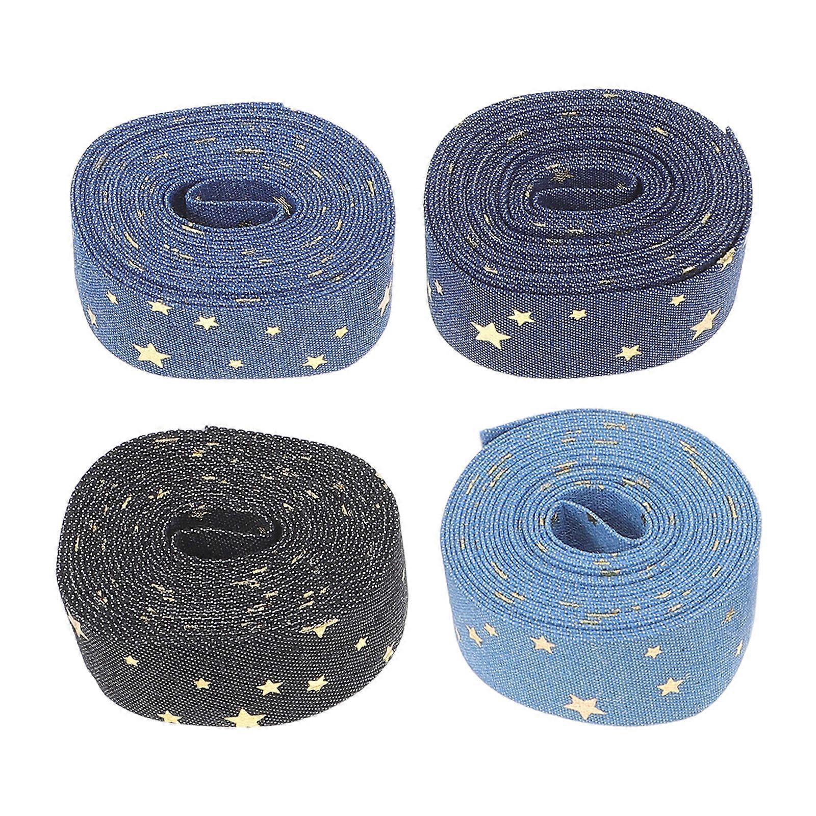 4 Rolls Gold Star Embroidered Denim Ribbon for DIY Crafts, Sewing, Wrapping & Decorations
