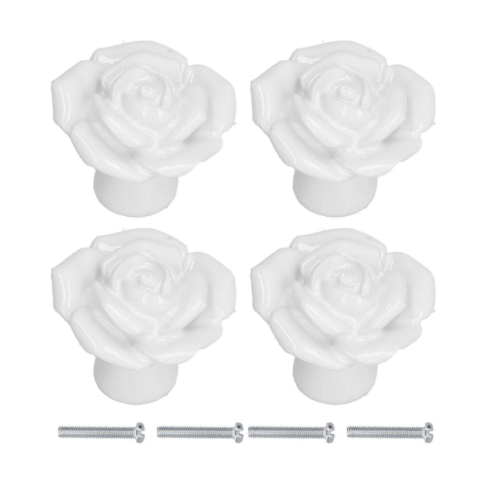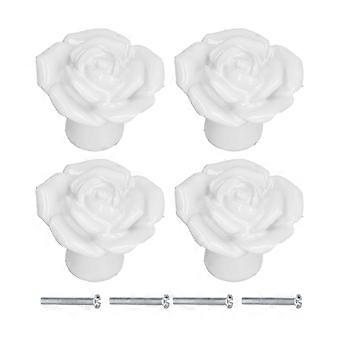 4 Set Rose Shaped Handle Modern Ceramic Cabinet Knob for Home Living Room Bedroom White