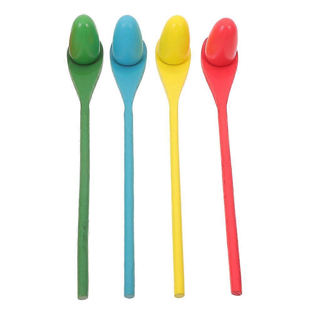 4 Sets Egg Spoon Race Game Set Wood Balance Relay Games with Ball Carnival Game for Kids Eggs Hunt Outdoor Family Activity Holiday Tot