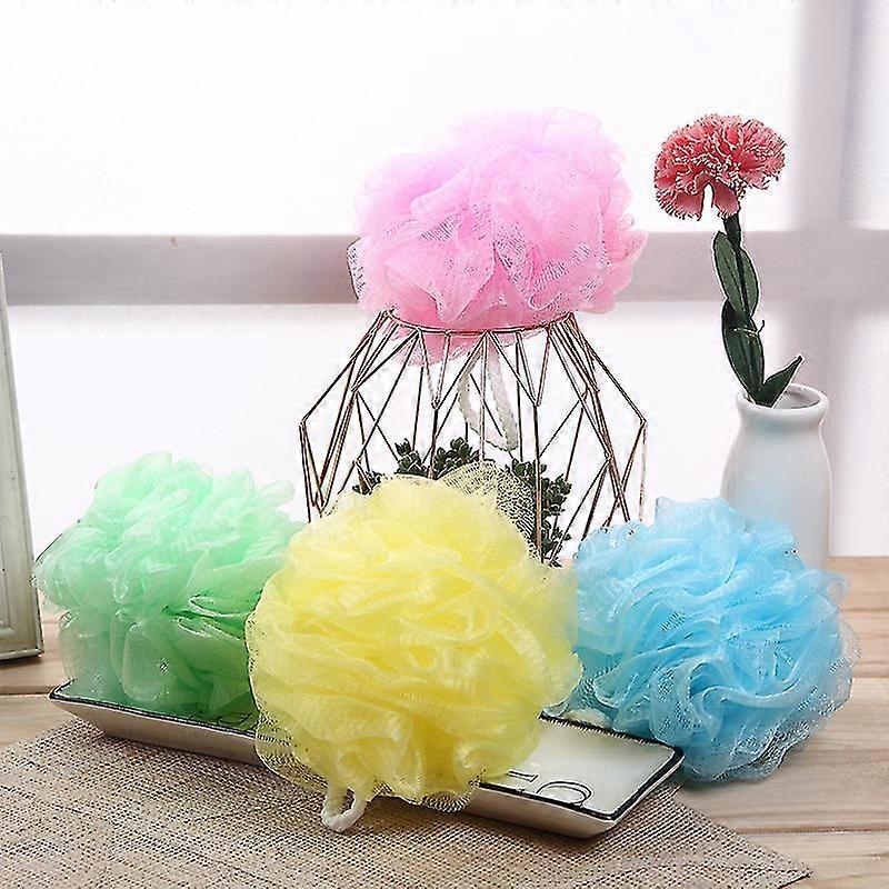 4 Bath Sponges, Pure Color Bath Flower, Pink Blue Green Yellow