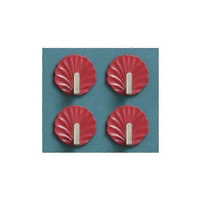 4 Pcs Seashell Wall Hooks - Red, Cute Shape Wall Hooks, Self Adhesive Bag Hanging Hooks