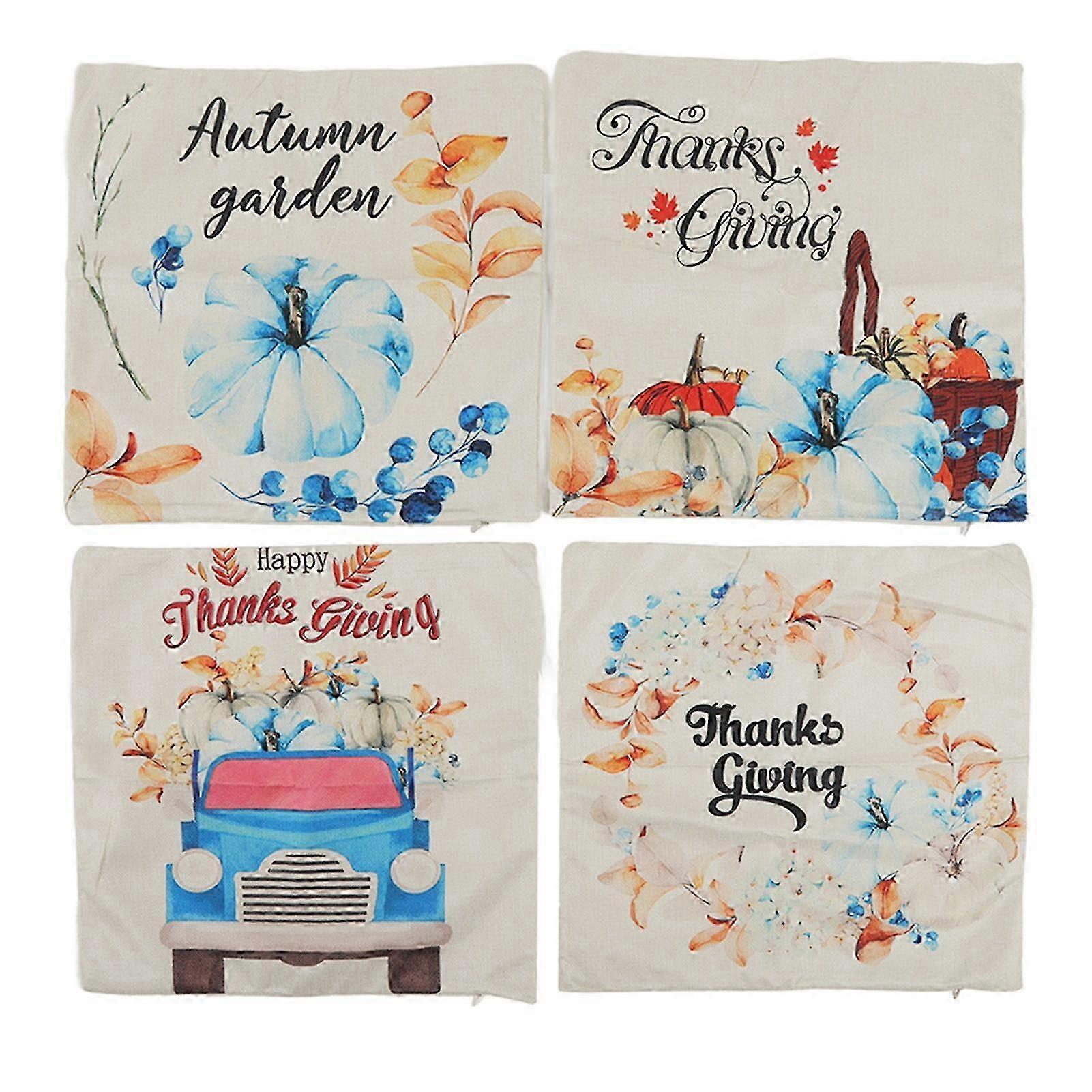 4 Pcs Thanksgiving Pillow Covers 45x45cm Invisibility Zipper Linen Fall Thanksgiving Pillowcase for Home A01