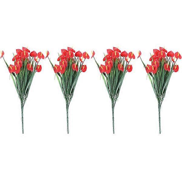 4 Bouquets Artificial Flowers Fake Anthurium Plants Plastic Shrubs Greenery Indoor Outdoor Hanging Planter Decorations For